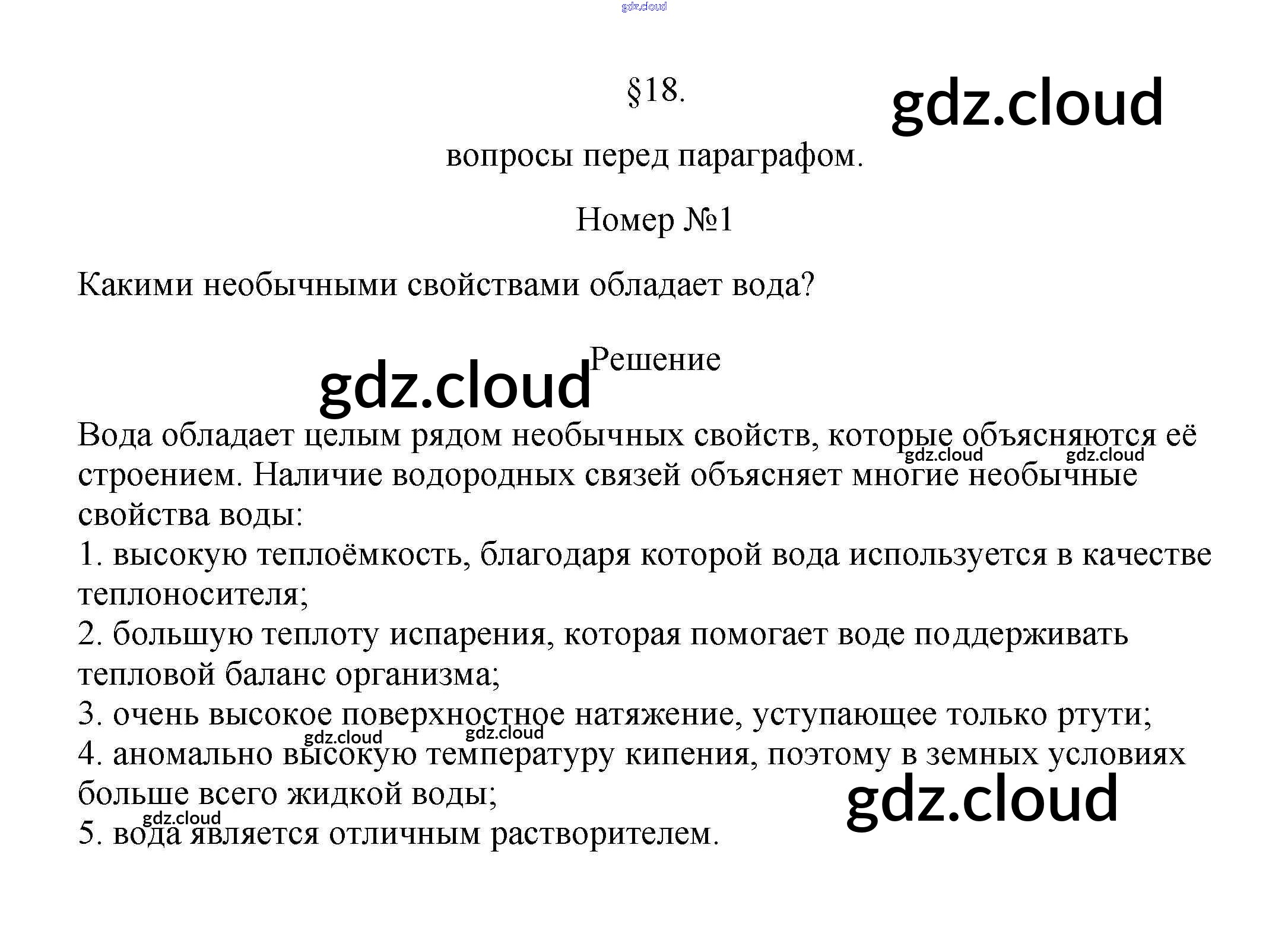 Вопросы перед параграфом Ответы к §18. Вода по Химии 7 класс Учебник Еремин Дрофа