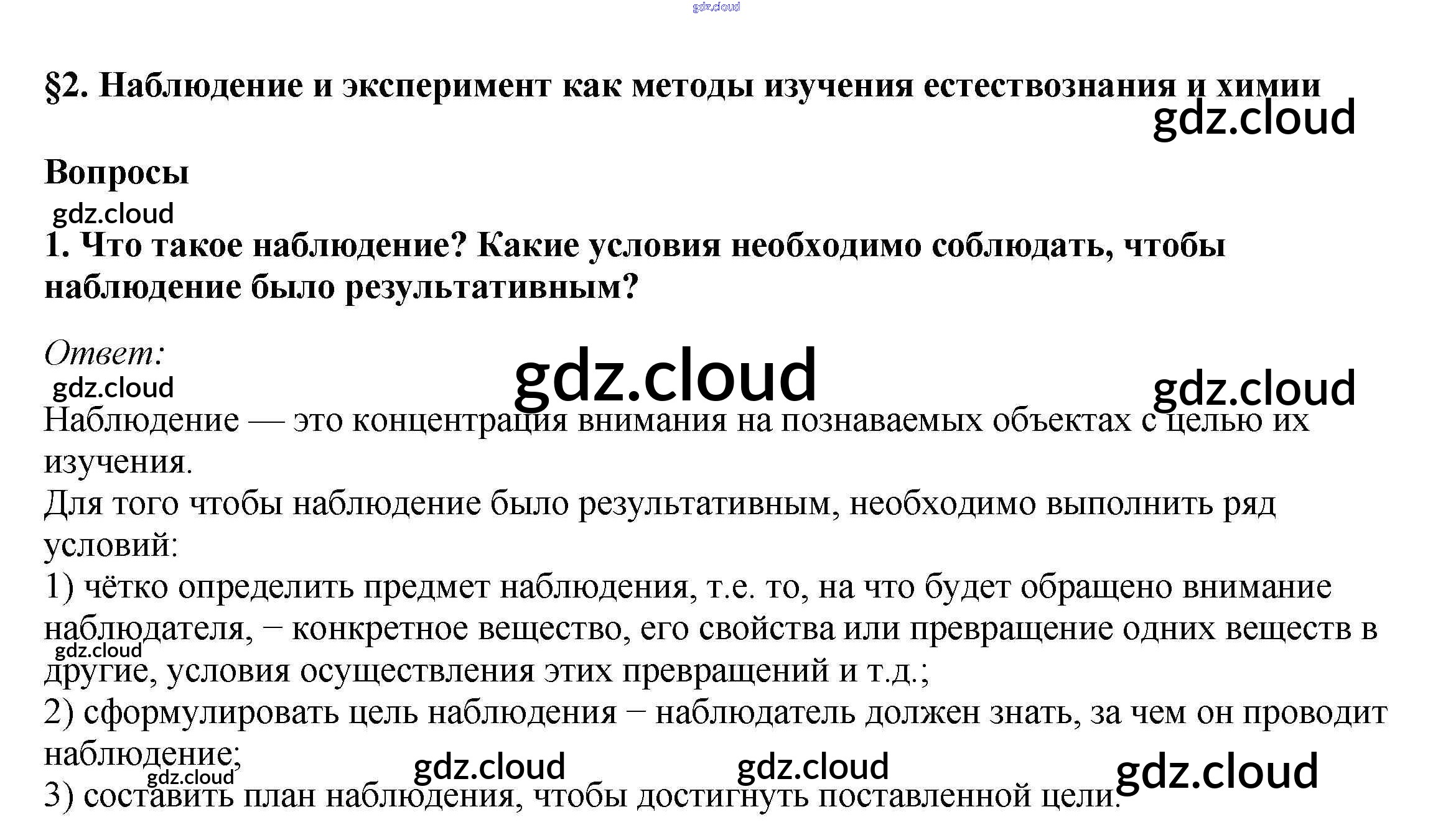 Вопросы Ответы к §2. Наблюдение и эксперимент как методы изучения естествознания и химии по Химии 7 класс Учебник Габриелян Дрофа