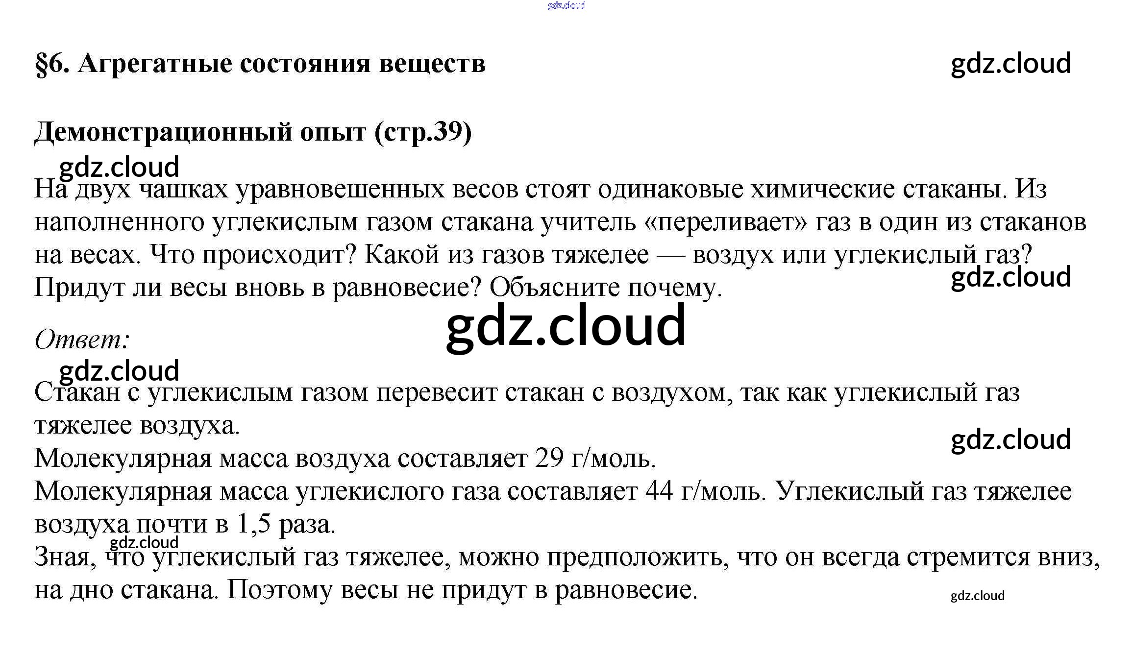 Демонстрационный опыт Ответы к §6. Агрегатные состояния веществ по Химии 7 класс Учебник Габриелян Дрофа