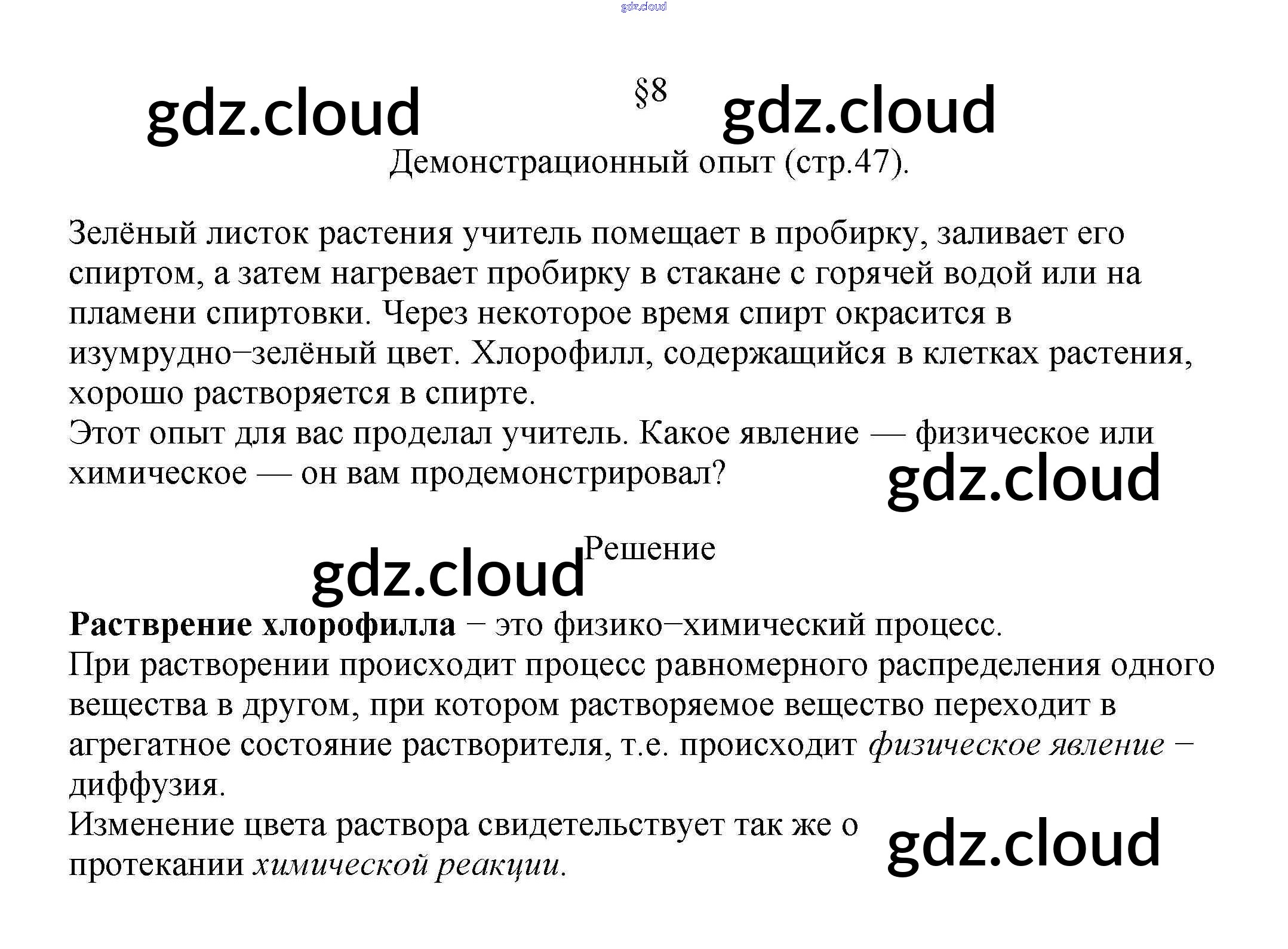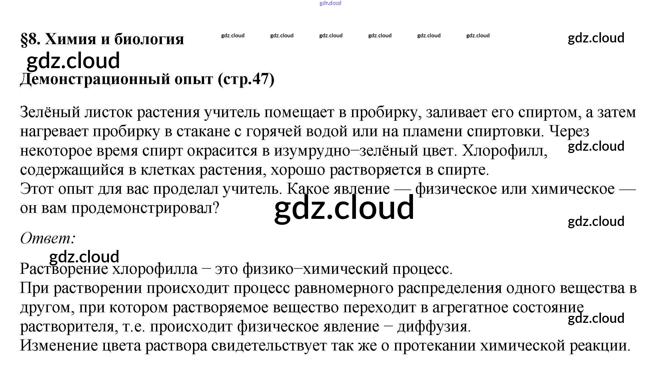 Демонстрационный опыт Ответы к §8. Химия и биология по Химии 7 класс Учебник Габриелян Дрофа