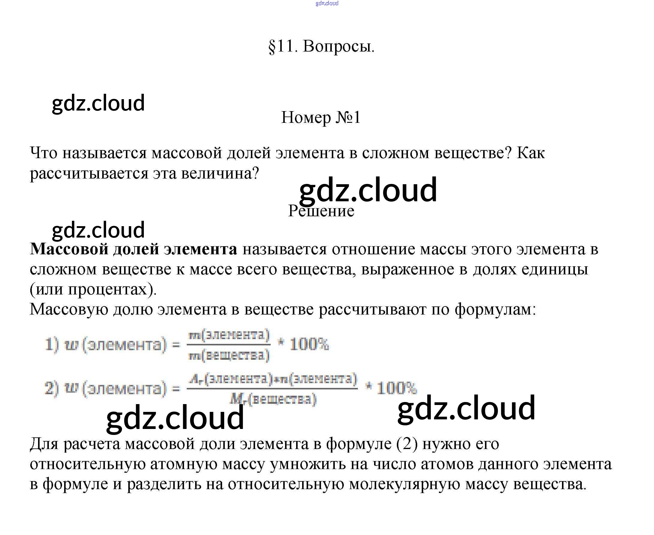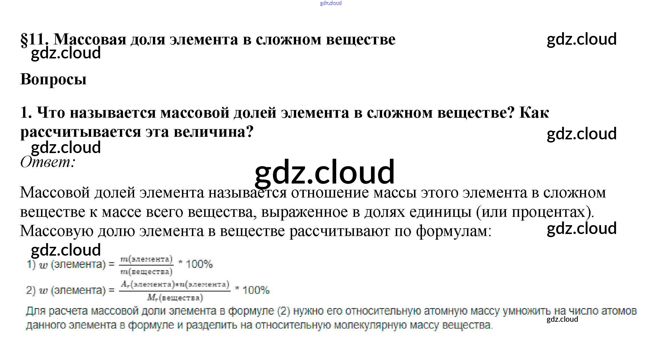 Вопросы Ответы к §11. Массовая доля элемента в сложном веществе по Химии 7 класс Учебник Габриелян Дрофа