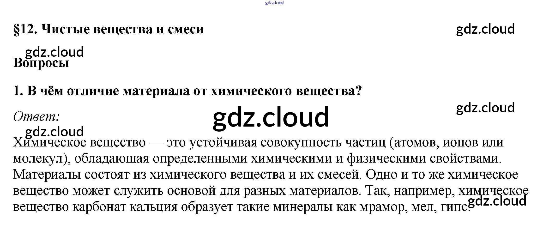 Вопросы Ответы к §12. Чистые вещества и смеси по Химии 7 класс Учебник Габриелян Дрофа