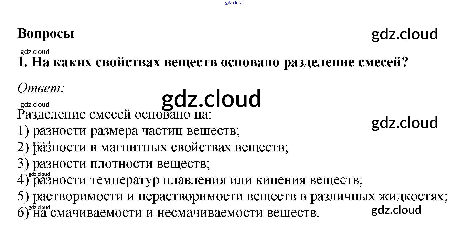 Вопросы Ответы к §16. Разделение смесей по Химии 7 класс Учебник Габриелян Дрофа