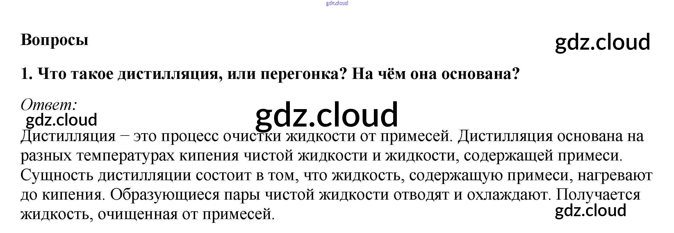 Вопросы Ответы к §17. Дистилляция, или перегонка по Химии 7 класс Учебник Габриелян Дрофа