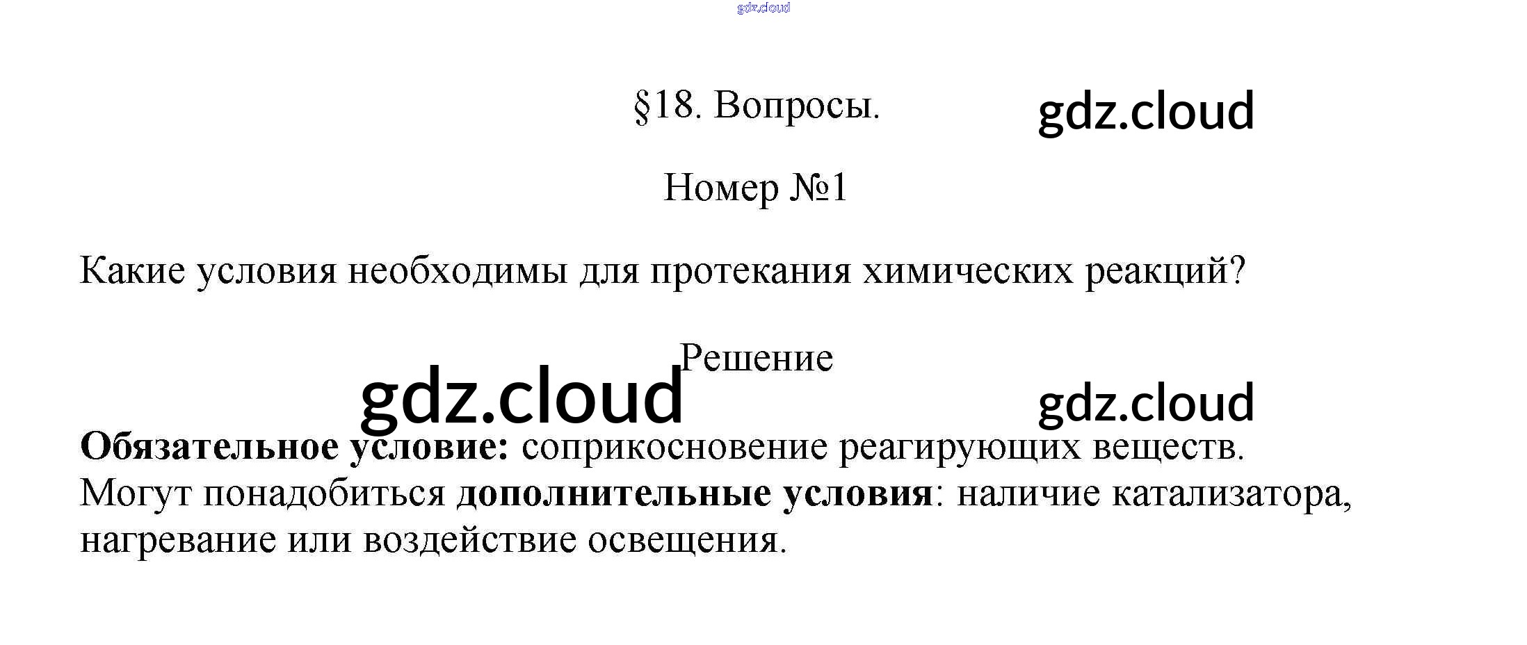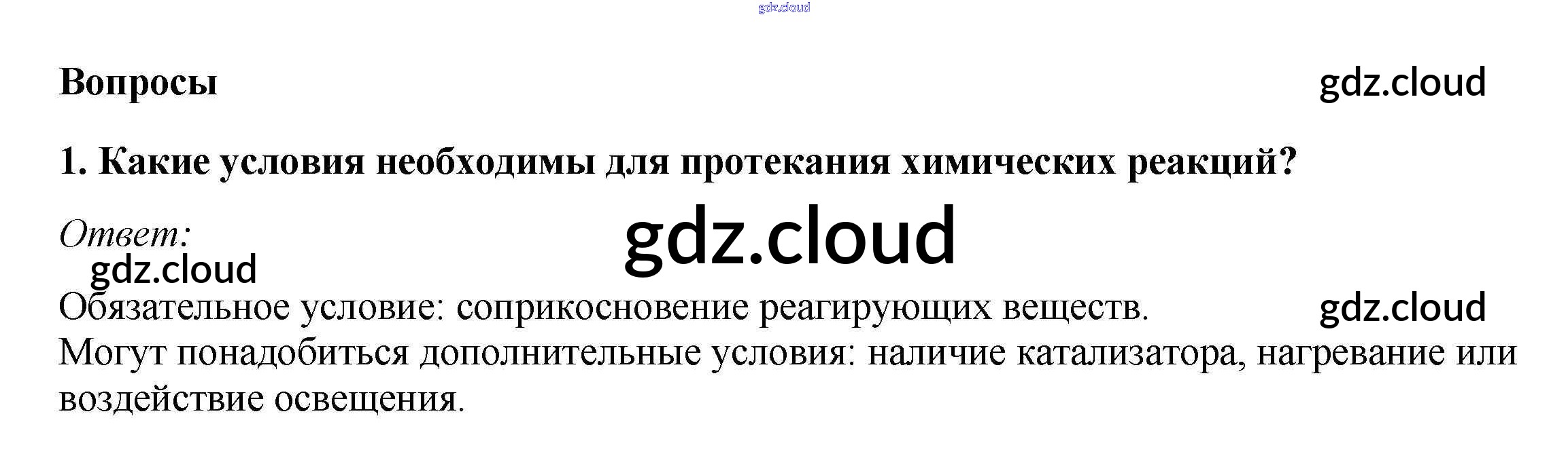 Вопросы Ответы к §18. Химические реакции. Условия протекания и прекращения химических реакций по Химии 7 класс Учебник Габриелян Дрофа