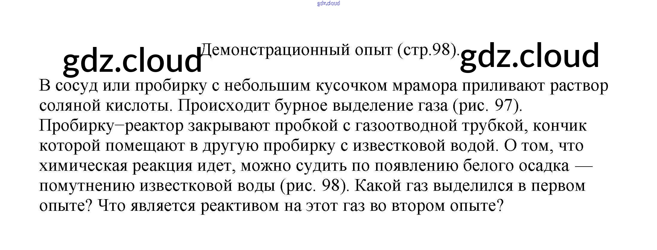 Демонстрационный опыт Ответы к §18. Химические реакции. Условия протекания и прекращения химических реакций по Химии 7 класс Учебник Габриелян Дрофа