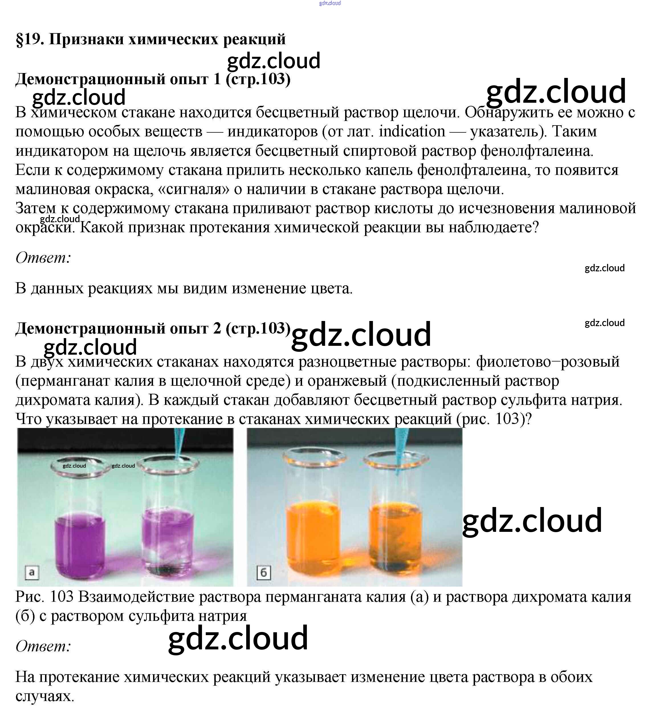 Демонстрационные опыты Ответы к §19. Признаки химических реакций по Химии 7 класс Учебник Габриелян Дрофа
