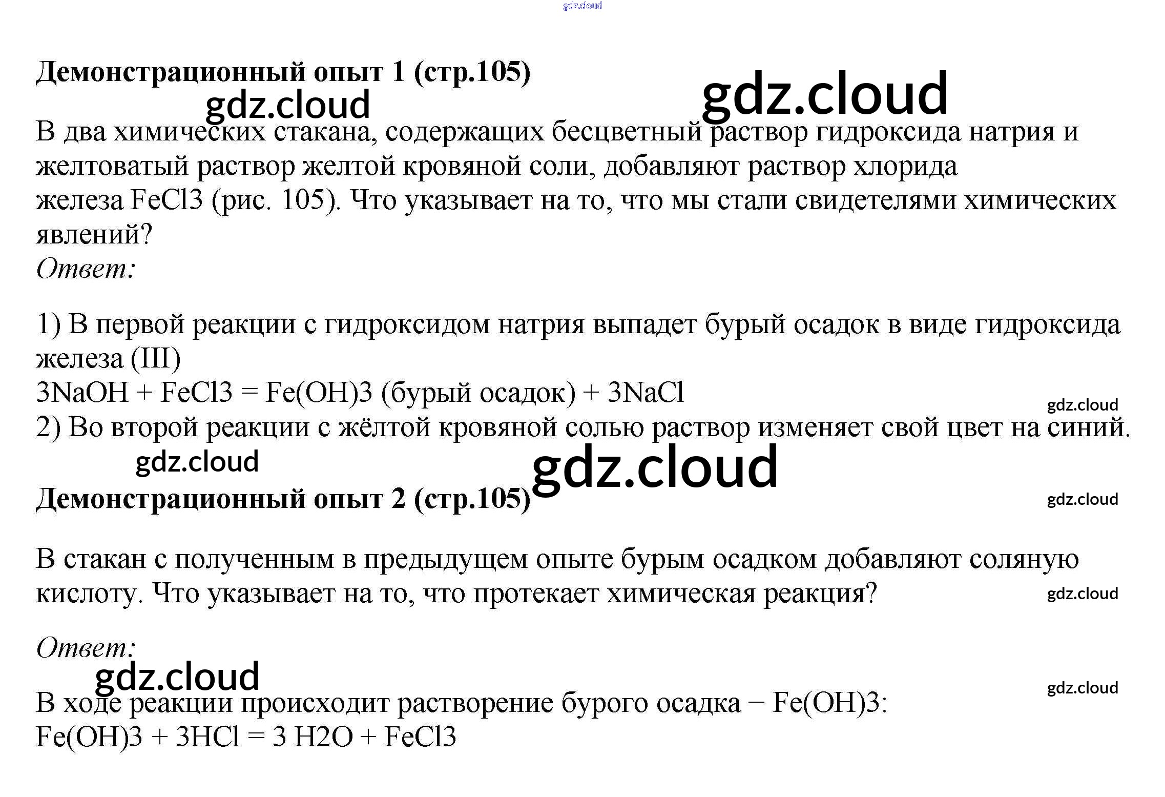 Демонстрационные опыты Ответы к §19. Признаки химических реакций по Химии 7 класс Учебник Габриелян Дрофа