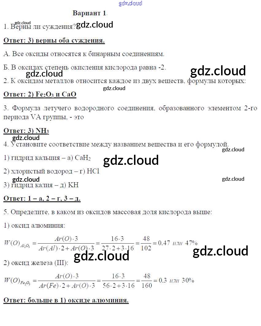 ПР-11. Варианты Ответы к проверочным работам по Химии 8 класс Контрольные работы Габриелян УМК Дрофа