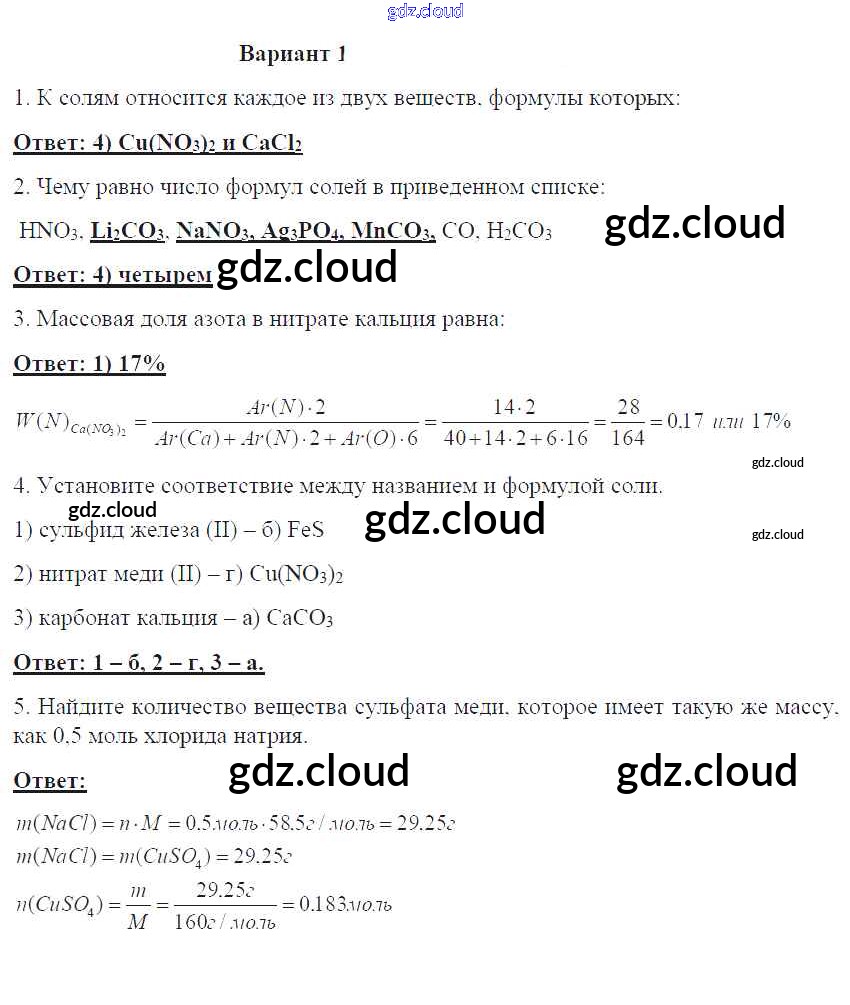 ПР-14. Варианты Ответы к проверочным работам по Химии 8 класс Контрольные работы Габриелян УМК Дрофа