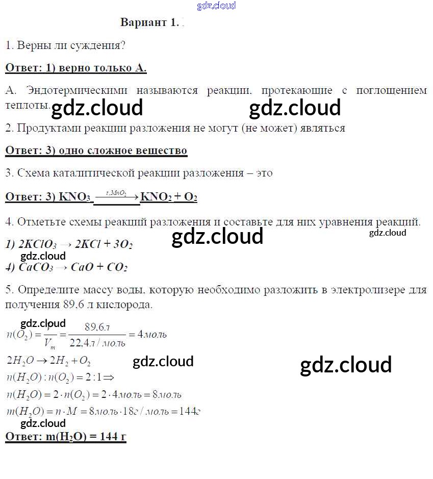 ПР-17. Варианты Ответы к проверочным работам по Химии 8 класс Контрольные работы Габриелян УМК Дрофа
