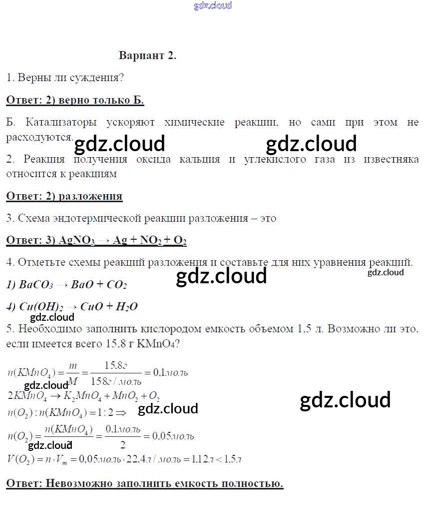 ПР-17. Варианты Ответы к проверочным работам по Химии 8 класс Контрольные работы Габриелян УМК Дрофа