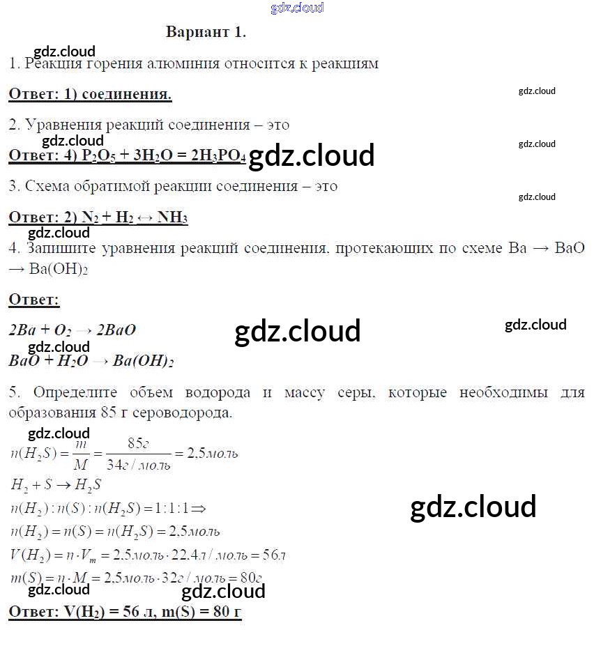 ПР-18. Варианты Ответы к проверочным работам по Химии 8 класс Контрольные работы Габриелян УМК Дрофа