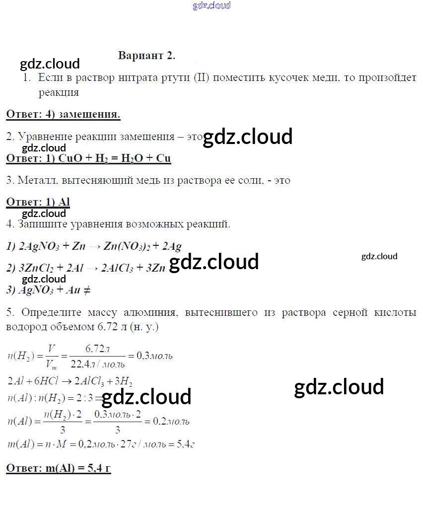 ПР-19. Варианты Ответы к проверочным работам по Химии 8 класс Контрольные работы Габриелян УМК Дрофа
