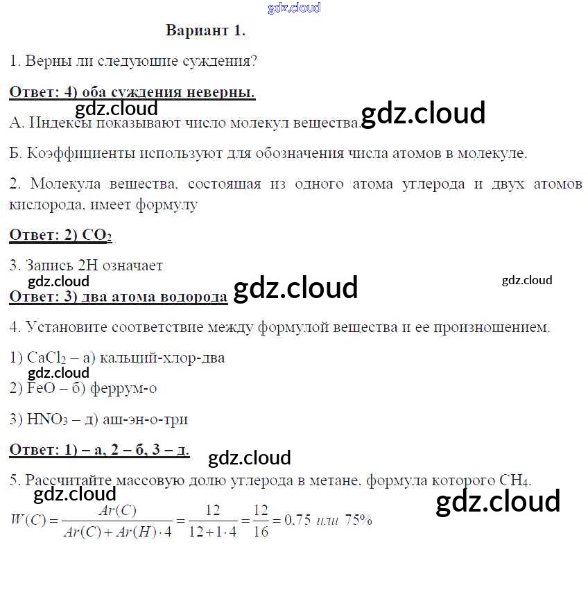 ПР-2. Варианты Ответы к проверочным работам по Химии 8 класс Контрольные работы Габриелян УМК Дрофа