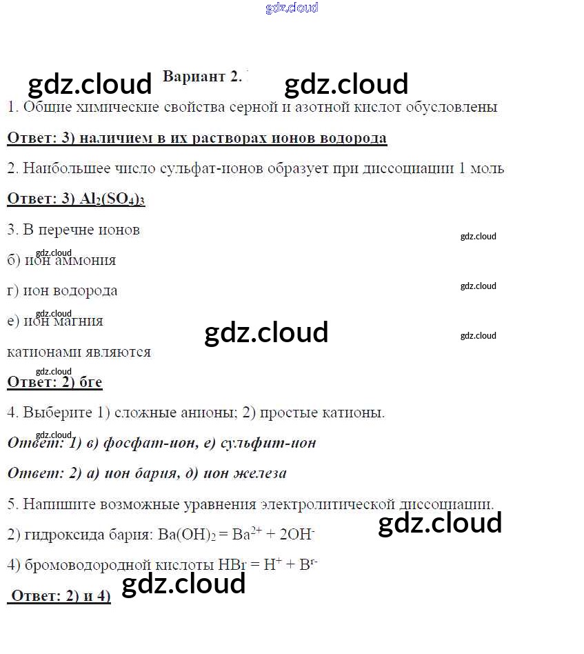 ПР-23. Варианты Ответы к проверочным работам по Химии 8 класс Контрольные работы Габриелян УМК Дрофа