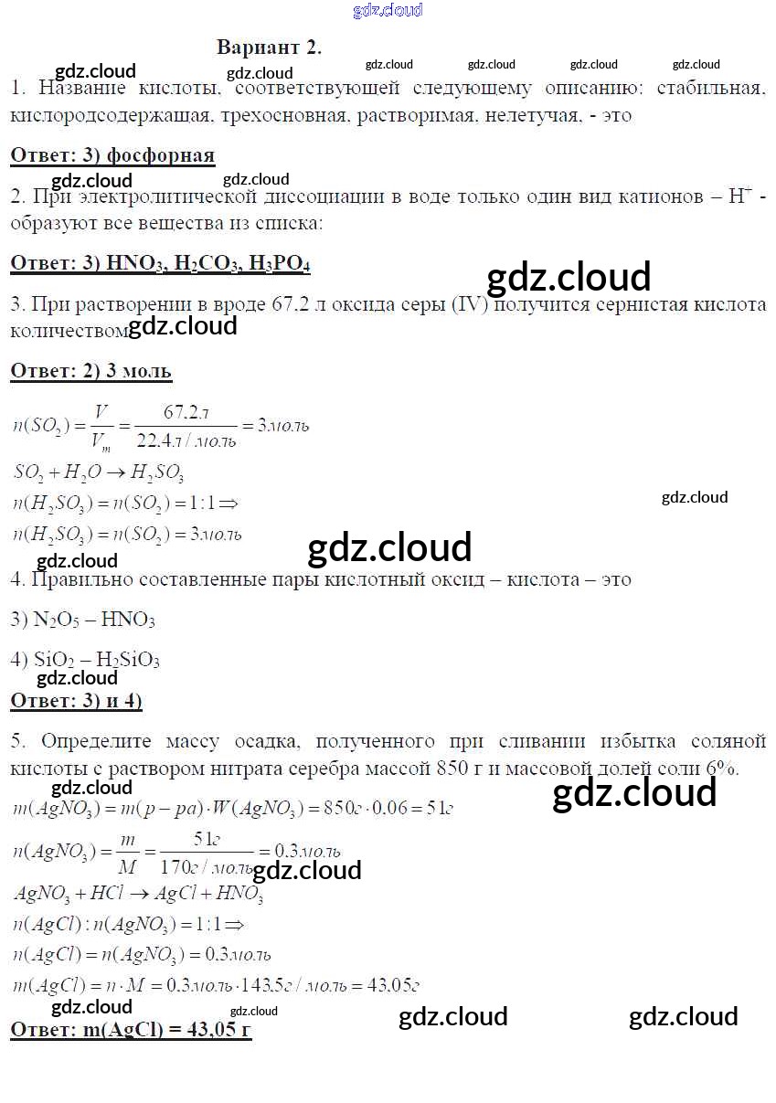 ПР-25. Варианты Ответы к проверочным работам по Химии 8 класс Контрольные работы Габриелян УМК Дрофа