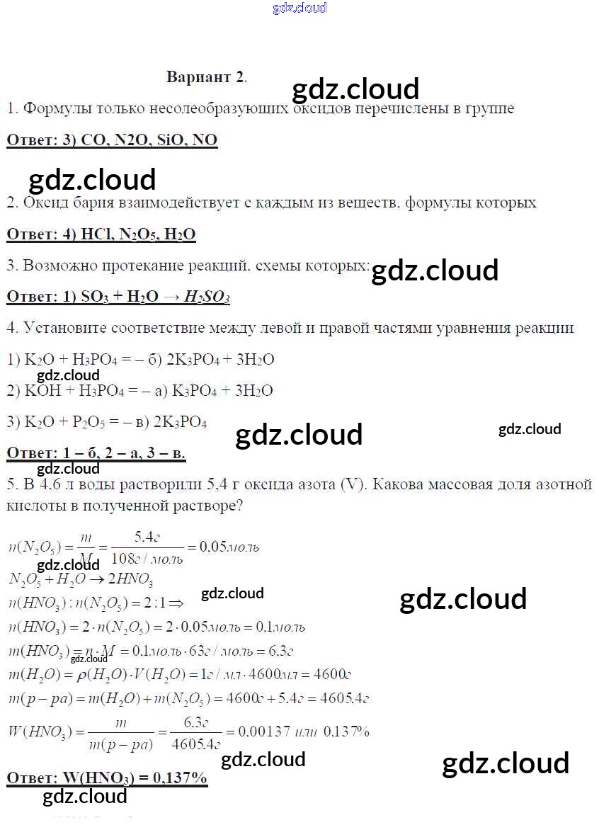 Ответ на задание 2 Контрольные работы Химия за 8 (восьмой) класс Габриелян, Краснова УМК 2017