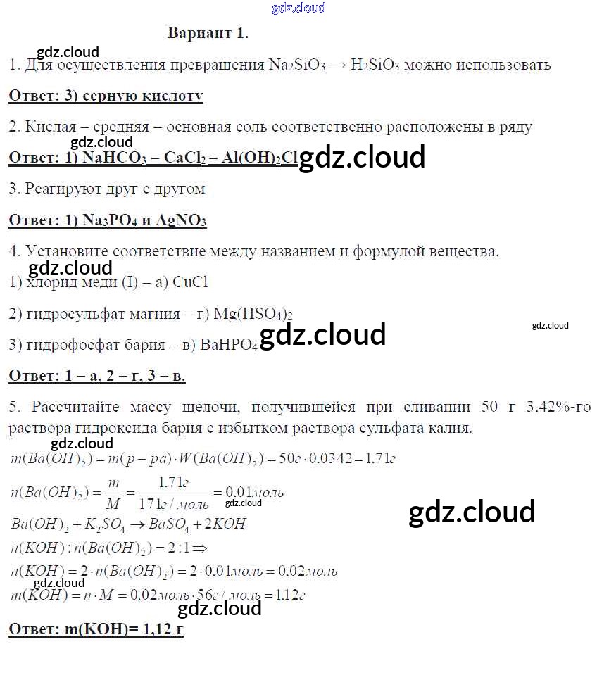 ПР-28. Варианты Ответы к проверочным работам по Химии 8 класс Контрольные работы Габриелян УМК Дрофа