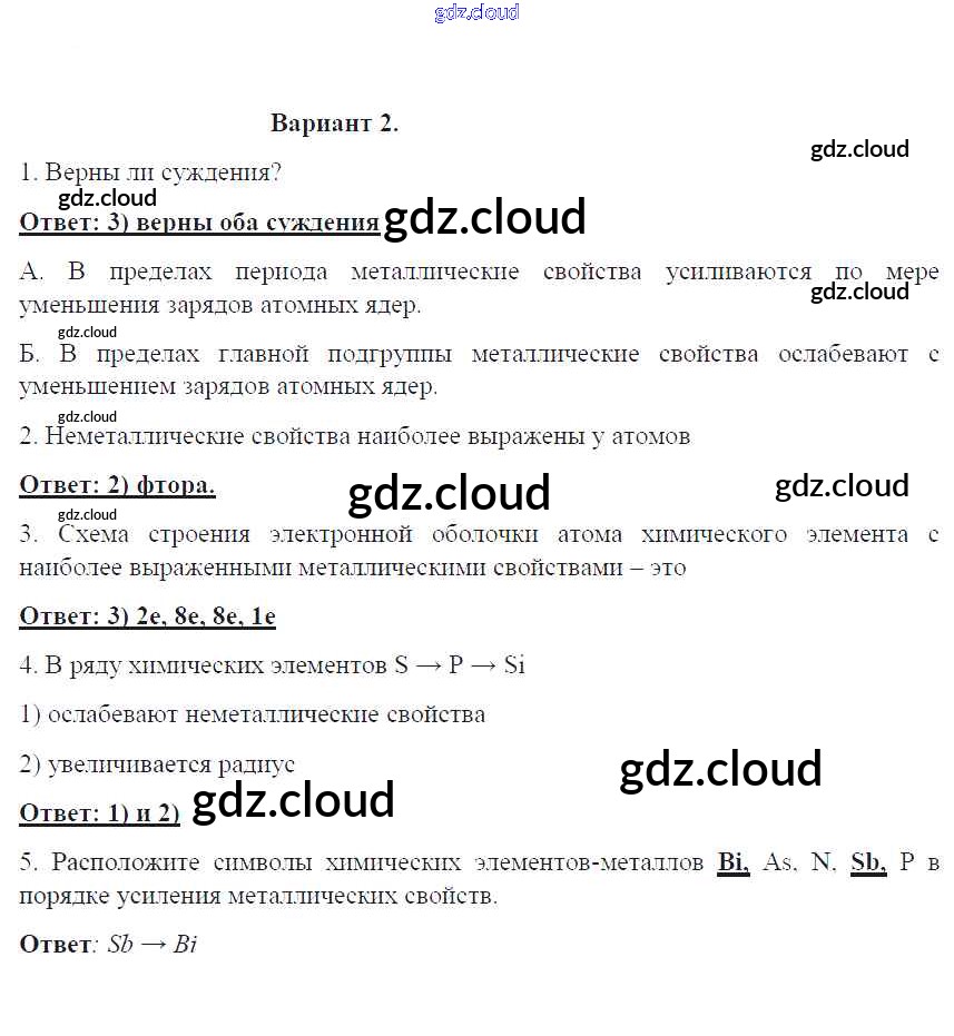 ПР-5. Варианты Ответы к проверочным работам по Химии 8 класс Контрольные работы Габриелян УМК Дрофа