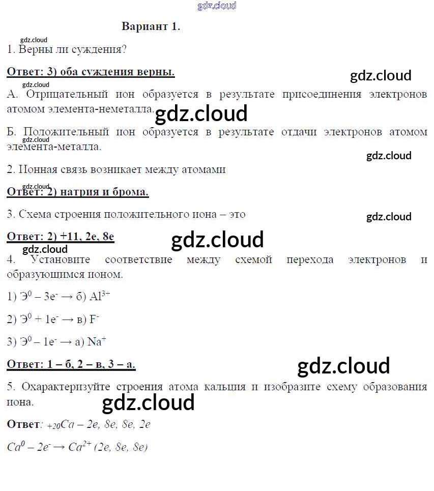 ПР-6. Варианты Ответы к проверочным работам по Химии 8 класс Контрольные работы Габриелян УМК Дрофа