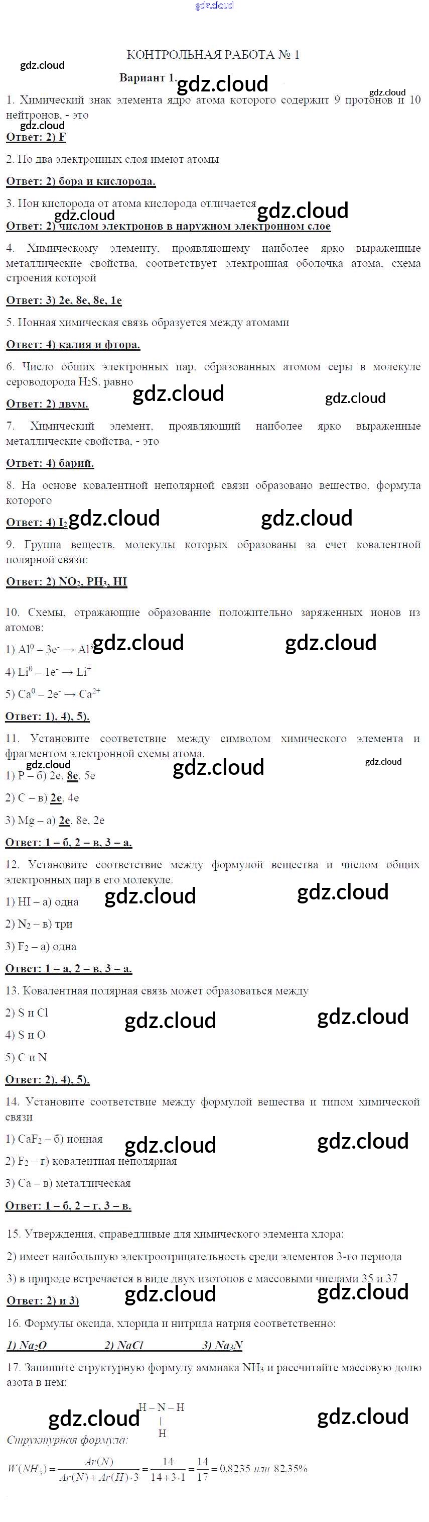 КР-1. Варианты Ответы к контрольным работам по Химии 8 класс Контрольные работы Габриелян УМК Дрофа