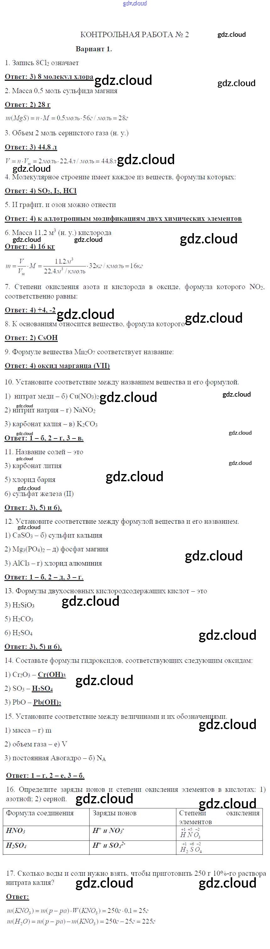 КР-2. Варианты Ответы к контрольным работам по Химии 8 класс Контрольные работы Габриелян УМК Дрофа