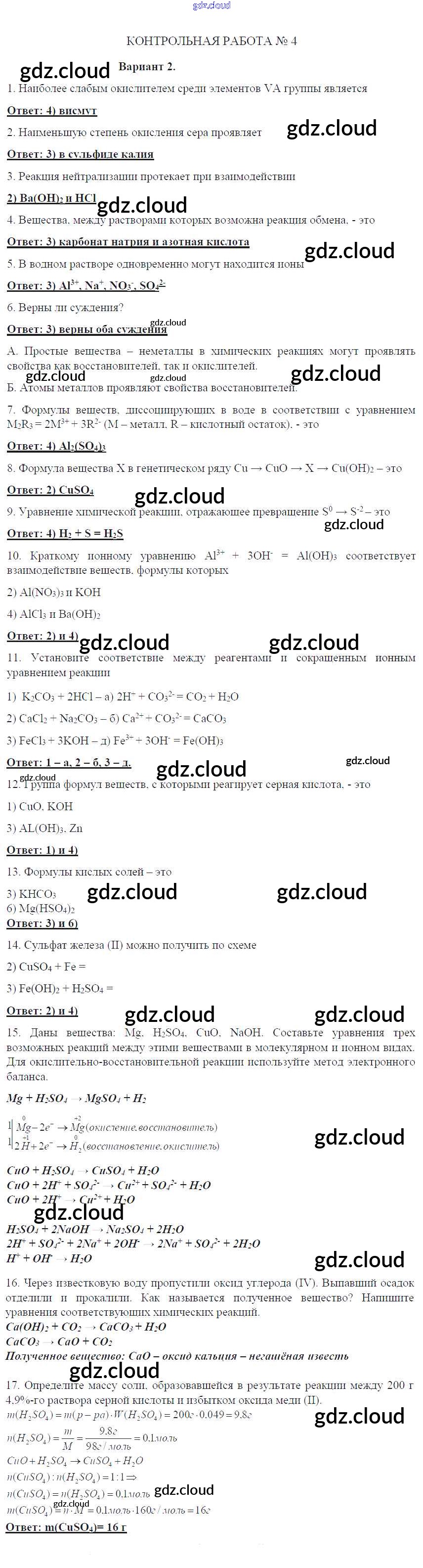 КР-4. Варианты Ответы к контрольным работам по Химии 8 класс Контрольные работы Габриелян УМК Дрофа