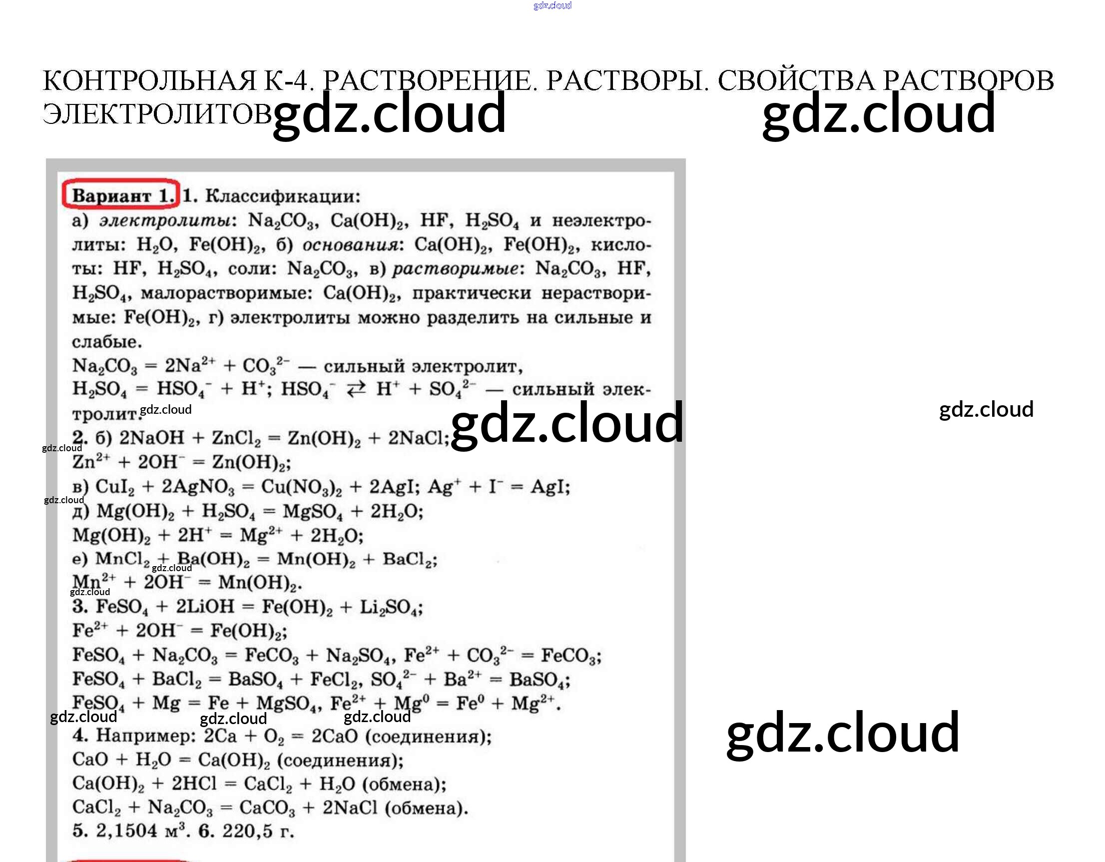 Ответы к контрольной работе 4 по Химии 8 класс Контрольные и самостоятельные работы Павлова УМК Экзамен