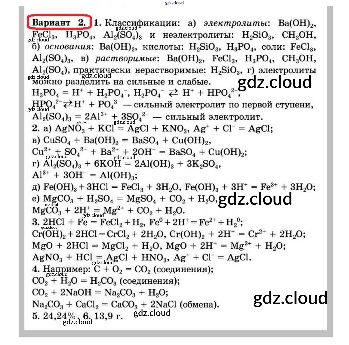 Ответы к контрольной работе 4 по Химии 8 класс Контрольные и самостоятельные работы Павлова УМК Экзамен