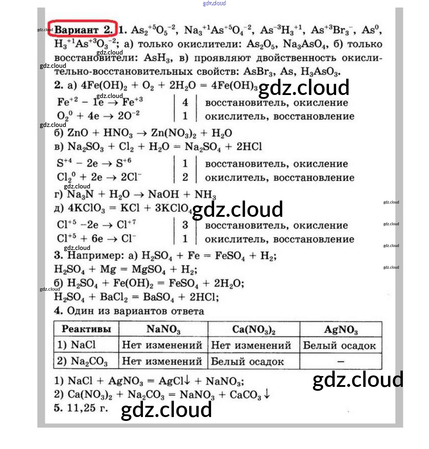Ответы к контрольной работе 5 по Химии 8 класс Контрольные и самостоятельные работы Павлова УМК Экзамен