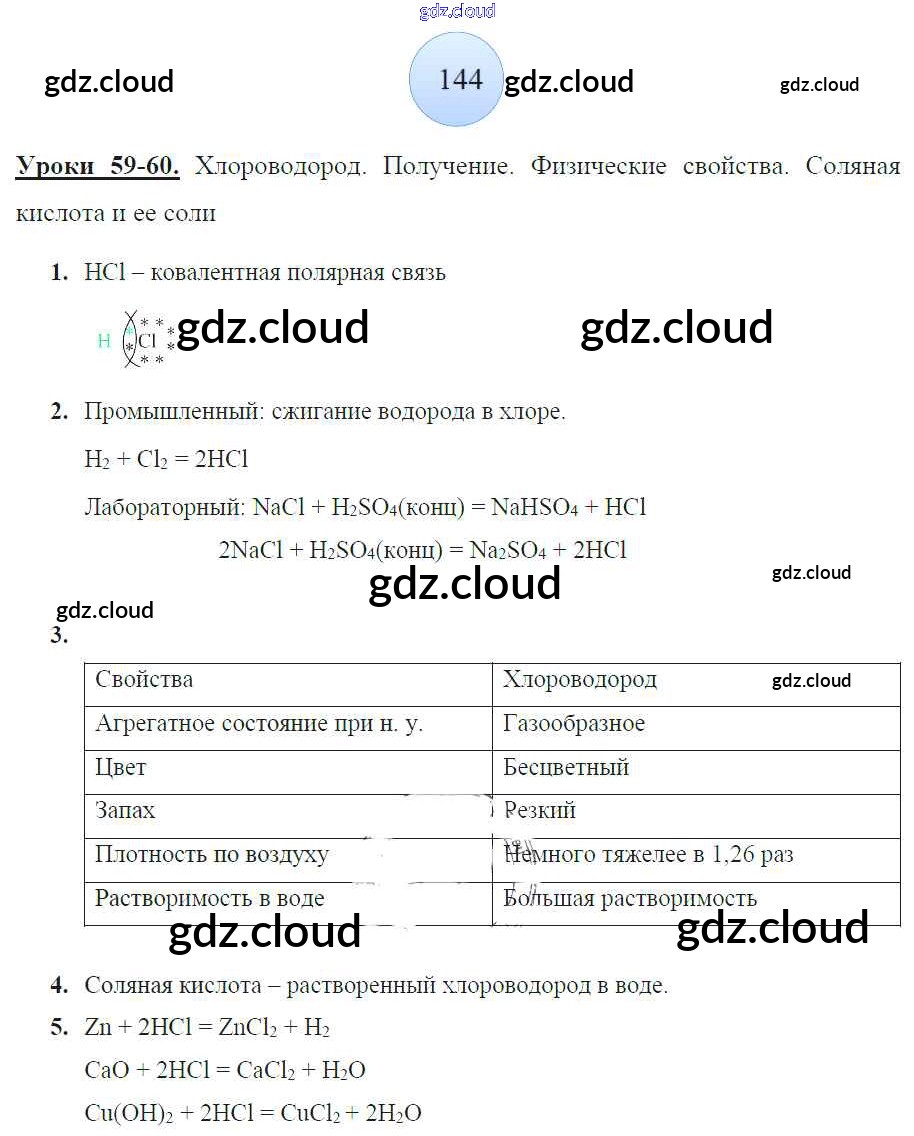 Ответ на задание 144 Рабочая тетрадь Химия за 8 (восьмой) класс Боровских УМК 2013 ФГОС онлайн и без номера телефона.