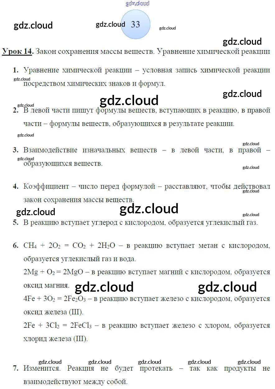 Ответ на задание 33 Рабочая тетрадь Химия за 8 (восьмой) класс Боровских УМК 2013 ФГОС онлайн и без номера телефона.