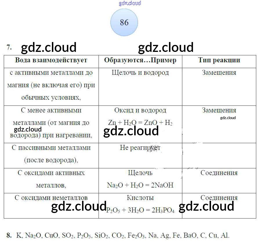 Ответ на задание 86 Рабочая тетрадь Химия за 8 (восьмой) класс Боровских УМК 2013 ФГОС онлайн и без номера телефона.