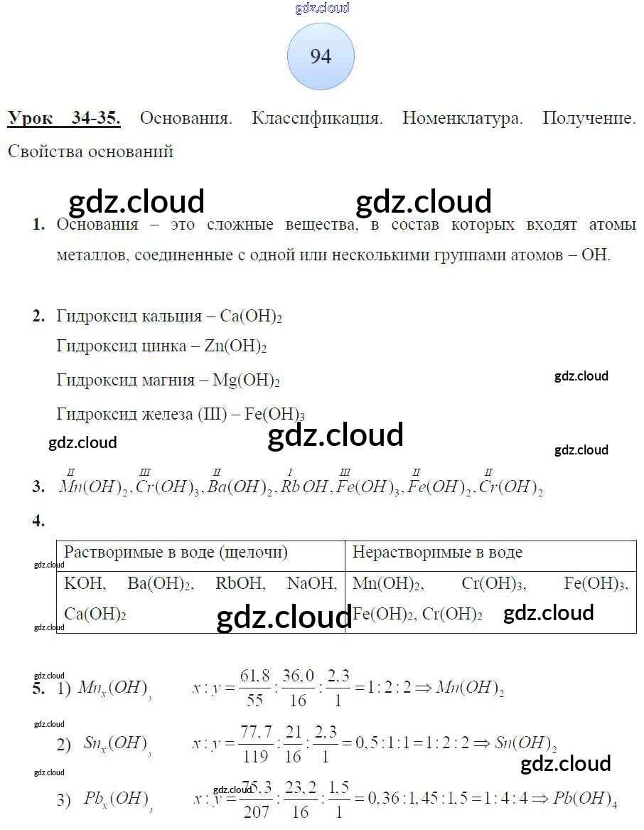 Ответ на задание 94 Рабочая тетрадь Химия за 8 (восьмой) класс Боровских УМК 2013 ФГОС онлайн и без номера телефона.