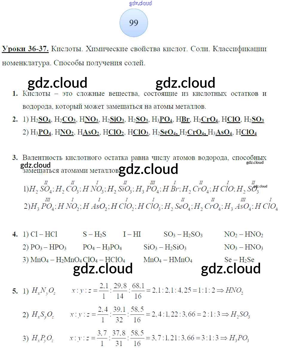 Ответ на задание 99 Рабочая тетрадь Химия за 8 (восьмой) класс Боровских УМК 2013 ФГОС онлайн и без номера телефона.
