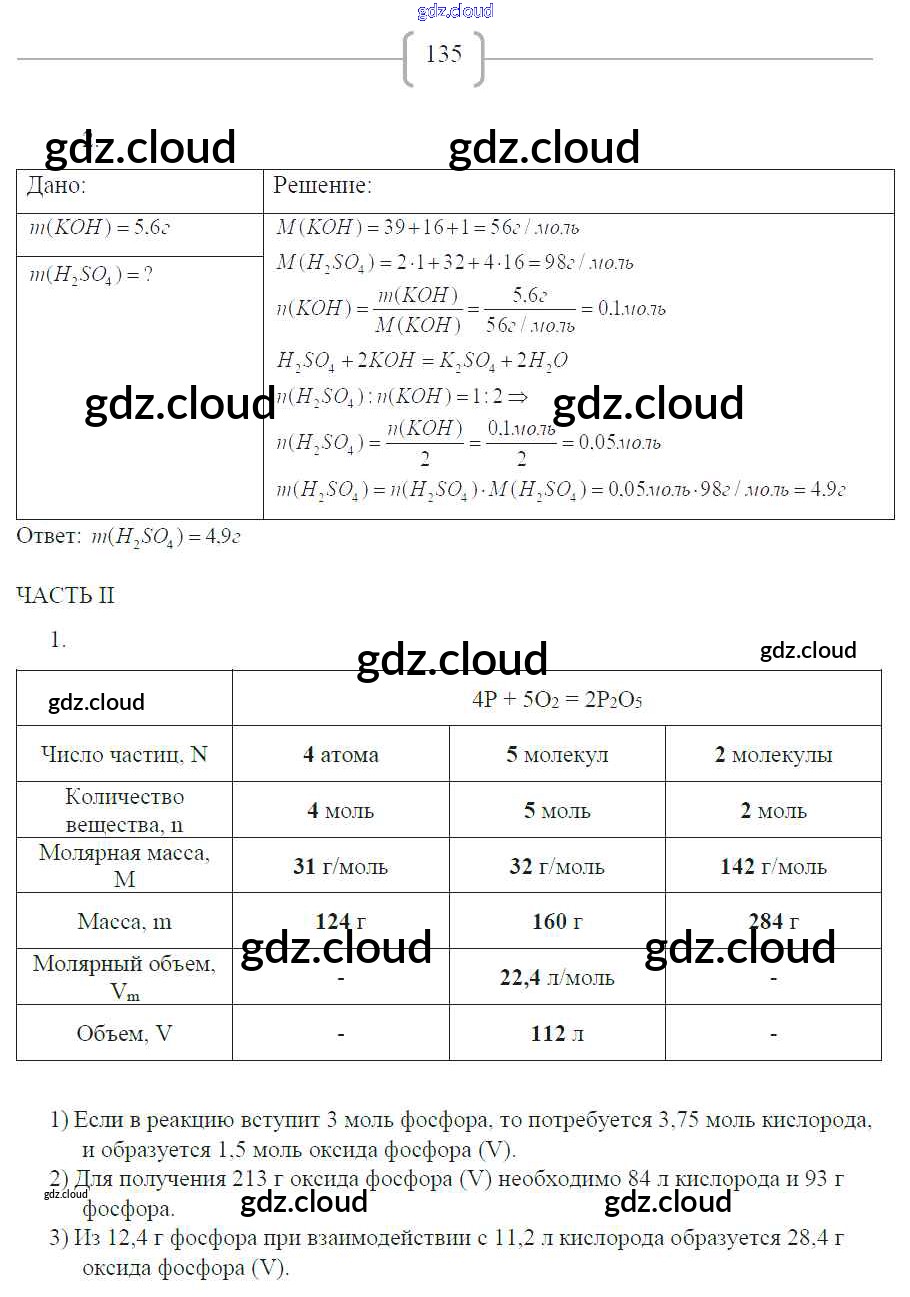 Ответ на задание 135 Рабочая тетрадь Химия за 8 (восьмой) класс Габриелян, Сладков УМК 2018 ФГОС онлайн и без номера телефона.