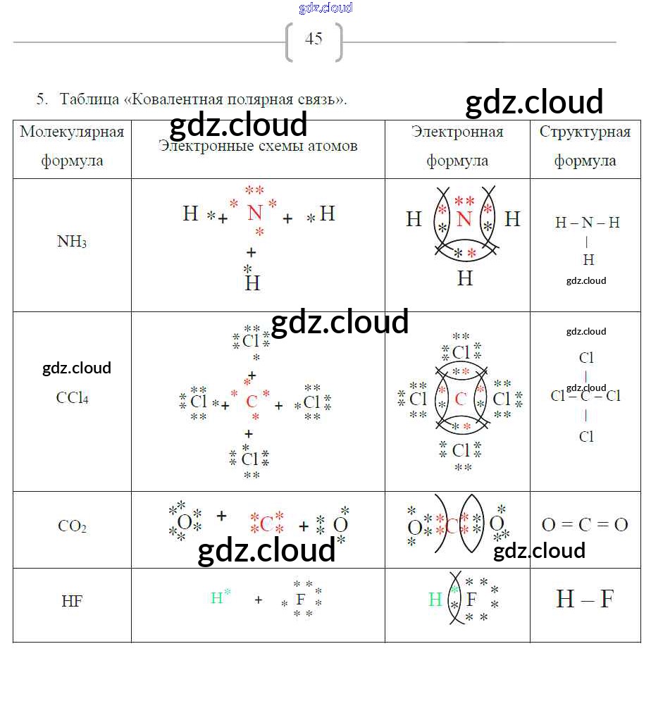 Ответ на задание 45 Рабочая тетрадь Химия за 8 (восьмой) класс Габриелян, Сладков УМК 2018 ФГОС онлайн и без номера телефона.