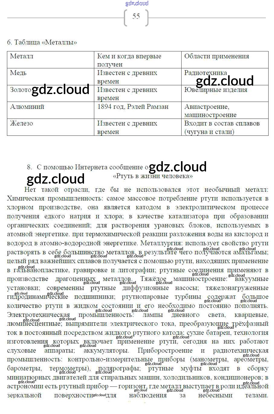 Ответ на задание 55 Рабочая тетрадь Химия за 8 (восьмой) класс Габриелян, Сладков УМК 2018 ФГОС онлайн и без номера телефона.