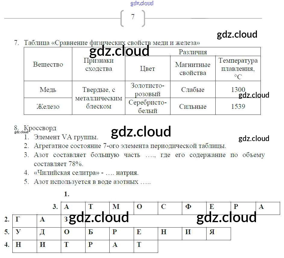 Ответ на задание 7 Рабочая тетрадь Химия за 8 (восьмой) класс Габриелян, Сладков УМК 2018 ФГОС онлайн и без номера телефона.
