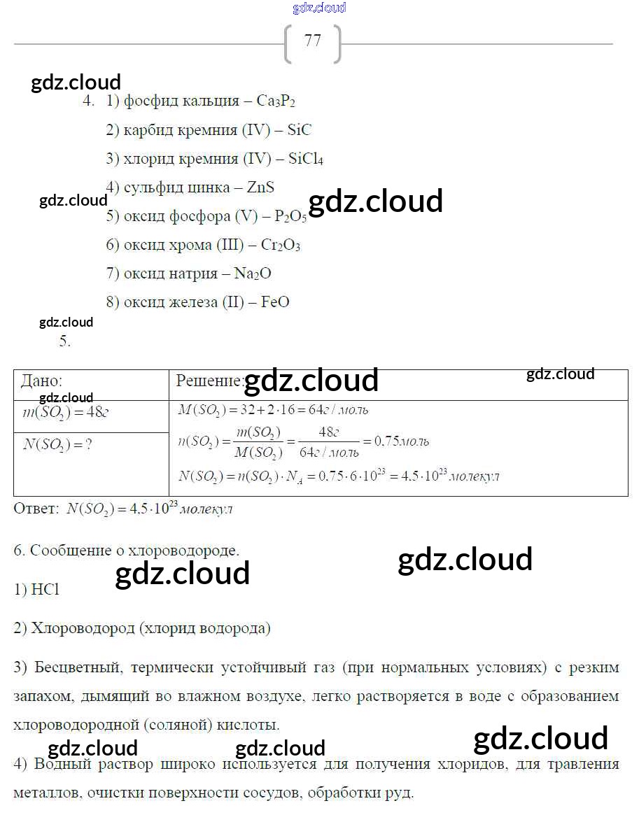 Ответ на задание 77 Рабочая тетрадь Химия за 8 (восьмой) класс Габриелян, Сладков УМК 2018 ФГОС онлайн и без номера телефона.