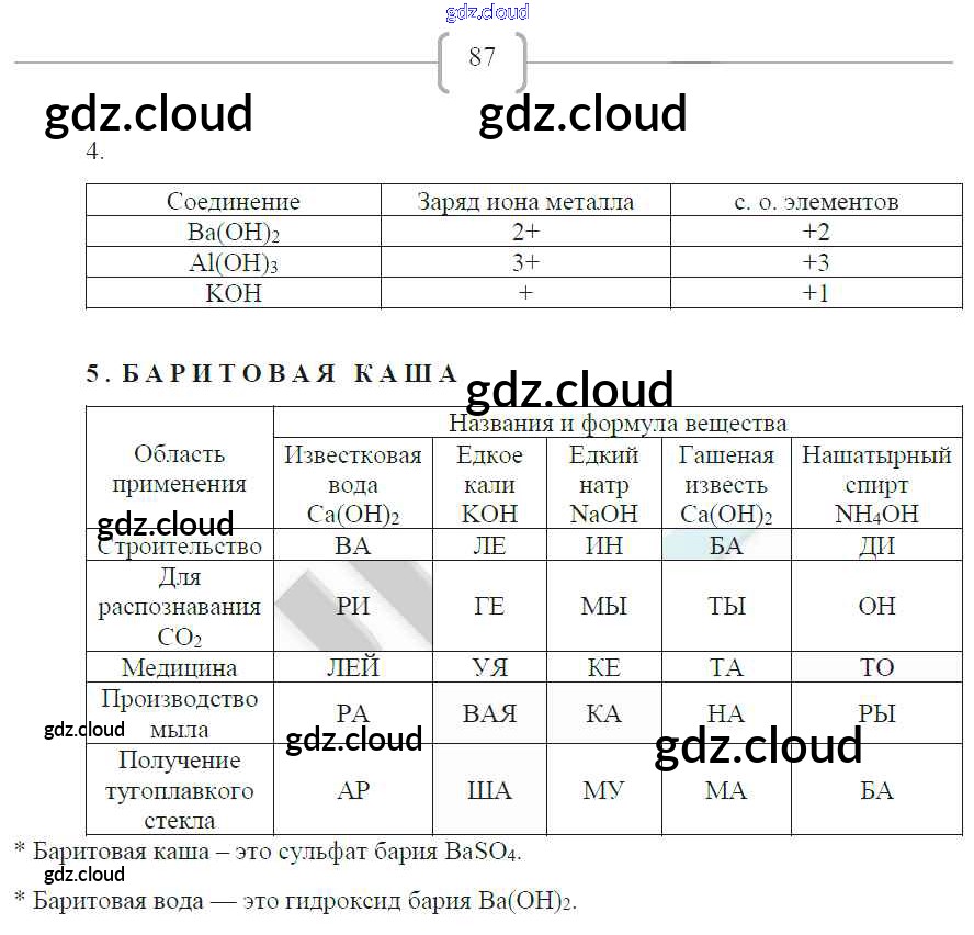 Ответ на задание 87 Рабочая тетрадь Химия за 8 (восьмой) класс Габриелян, Сладков УМК 2018 ФГОС онлайн и без номера телефона.