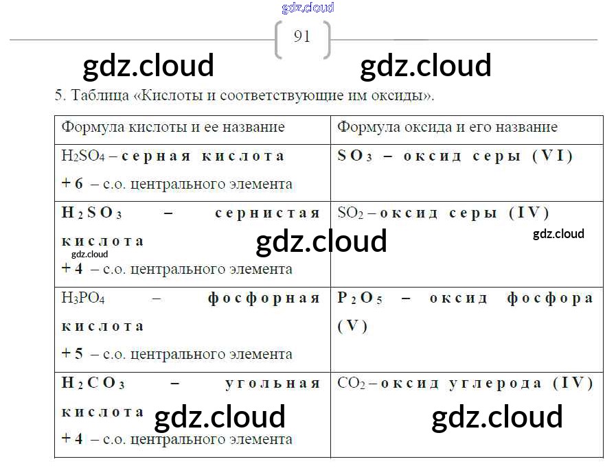 Ответ на задание 91 Рабочая тетрадь Химия за 8 (восьмой) класс Габриелян, Сладков УМК 2018 ФГОС онлайн и без номера телефона.