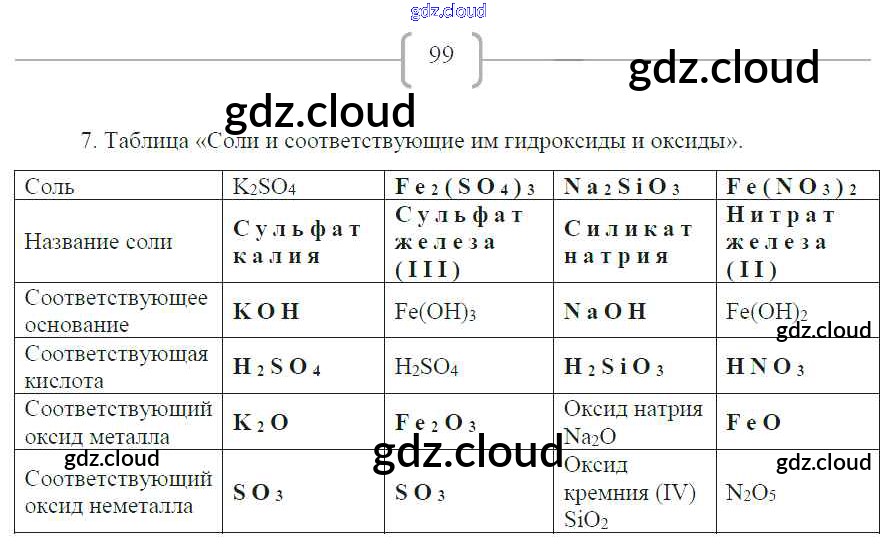 Ответ на задание 99 Рабочая тетрадь Химия за 8 (восьмой) класс Габриелян, Сладков УМК 2018 ФГОС онлайн и без номера телефона.