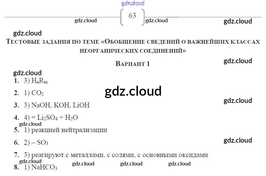 Ответ на задание 63 Рабочая тетрадь Химия за 8 (восьмой) класс Габрусева УМК 2017 ФГОС онлайн и без номера телефона.