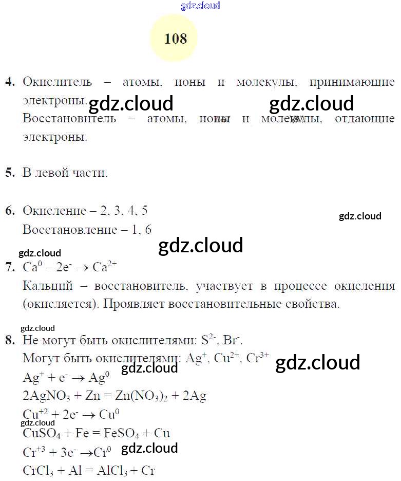 Ответ на задание 108 Рабочая тетрадь Химия за 8 (восьмой) класс Микитюк УМК 2015 ФГОС онлайн и без номера телефона.