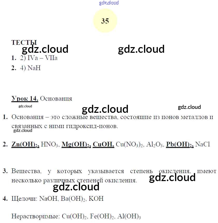 Ответ на задание 35 Рабочая тетрадь Химия за 8 (восьмой) класс Микитюк УМК 2015 ФГОС онлайн и без номера телефона.