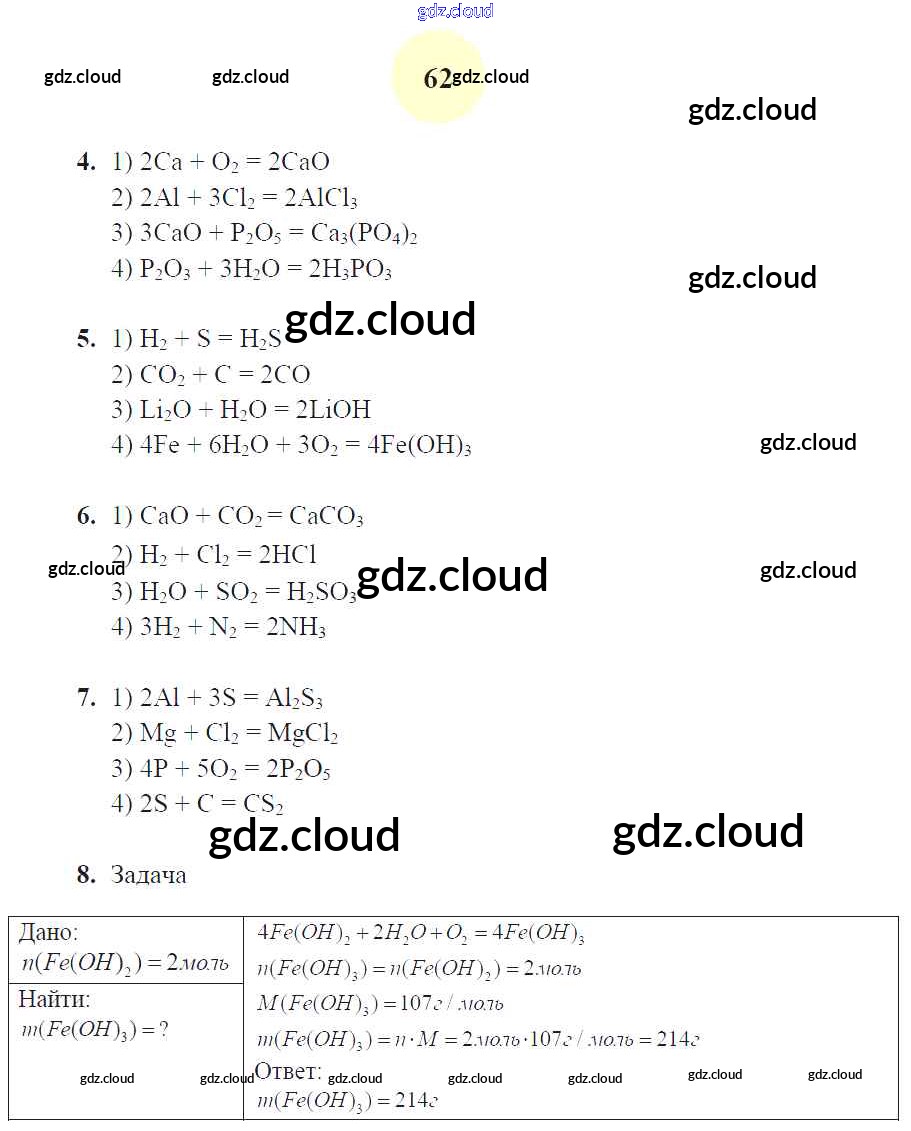 Ответ на задание 62 Рабочая тетрадь Химия за 8 (восьмой) класс Микитюк УМК 2015 ФГОС онлайн и без номера телефона.