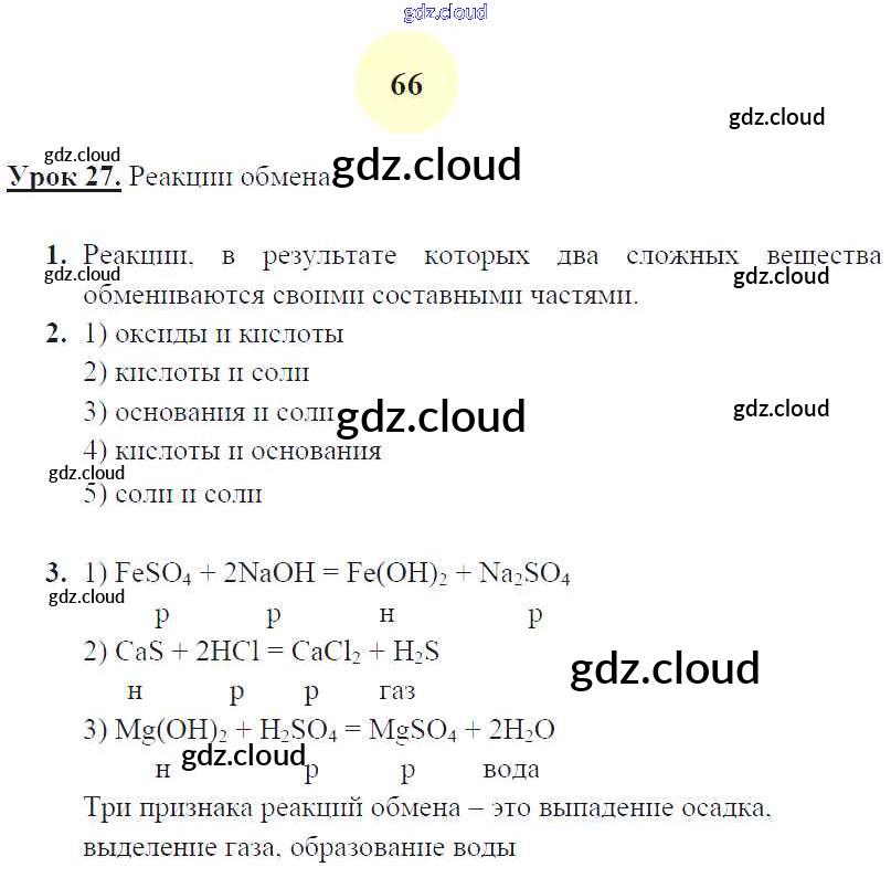 Ответ на задание 66 Рабочая тетрадь Химия за 8 (восьмой) класс Микитюк УМК 2015 ФГОС онлайн и без номера телефона.