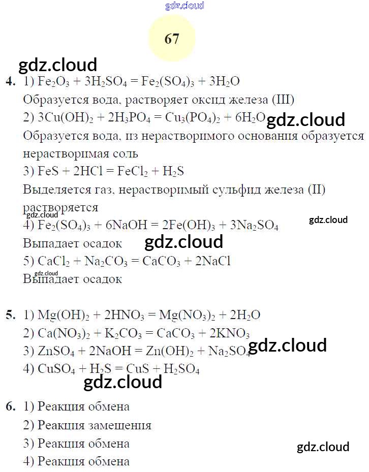 Ответ на задание 67 Рабочая тетрадь Химия за 8 (восьмой) класс Микитюк УМК 2015 ФГОС онлайн и без номера телефона.